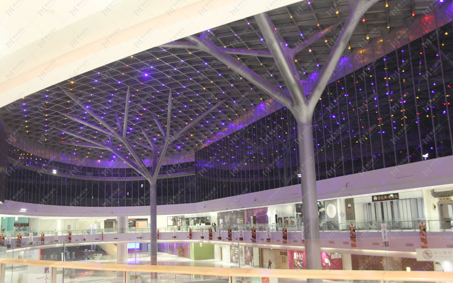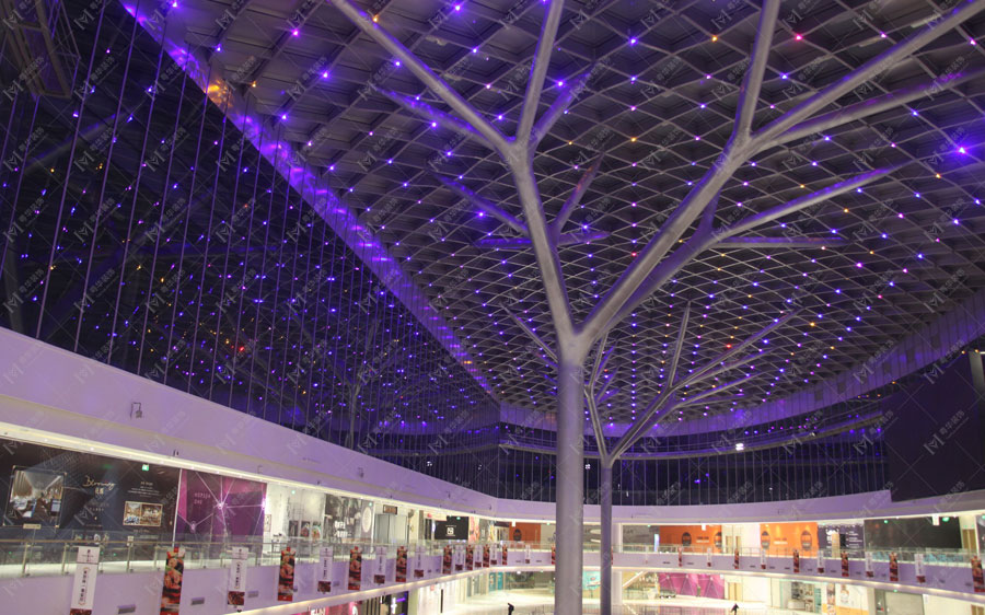 殼體節(jié)點(diǎn)加裝了全色LED燈似漫天星斗。26米的舉高高度恰好的把人和殼體空間融合在一起。