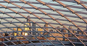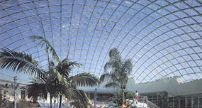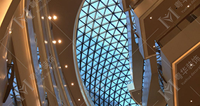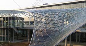 薄殼結(jié)構(gòu) (Reticulated Shell Structure)就是曲面的薄壁結(jié)構(gòu),按曲面生成的形式分為筒殼、圓頂薄殼、雙曲扁殼和雙曲拋物面殼等,我公司材料大都采用預(yù)制鋼桿件和鋁材的網(wǎng)殼,必要時(shí)附預(yù)應(yīng)力拉索。殼體能充分利用材料強(qiáng)度,同時(shí)又能將承重與圍護(hù)兩種功能融合為一。實(shí)際工程中還可利用對空間曲面的切削與組合,形成造型奇特新穎且能適應(yīng)各種平面的建筑。薄殼結(jié)構(gòu)的優(yōu)點(diǎn)是可以把受到的壓力均勻地分散到物體的各個(gè)部分,減少受到的壓力。